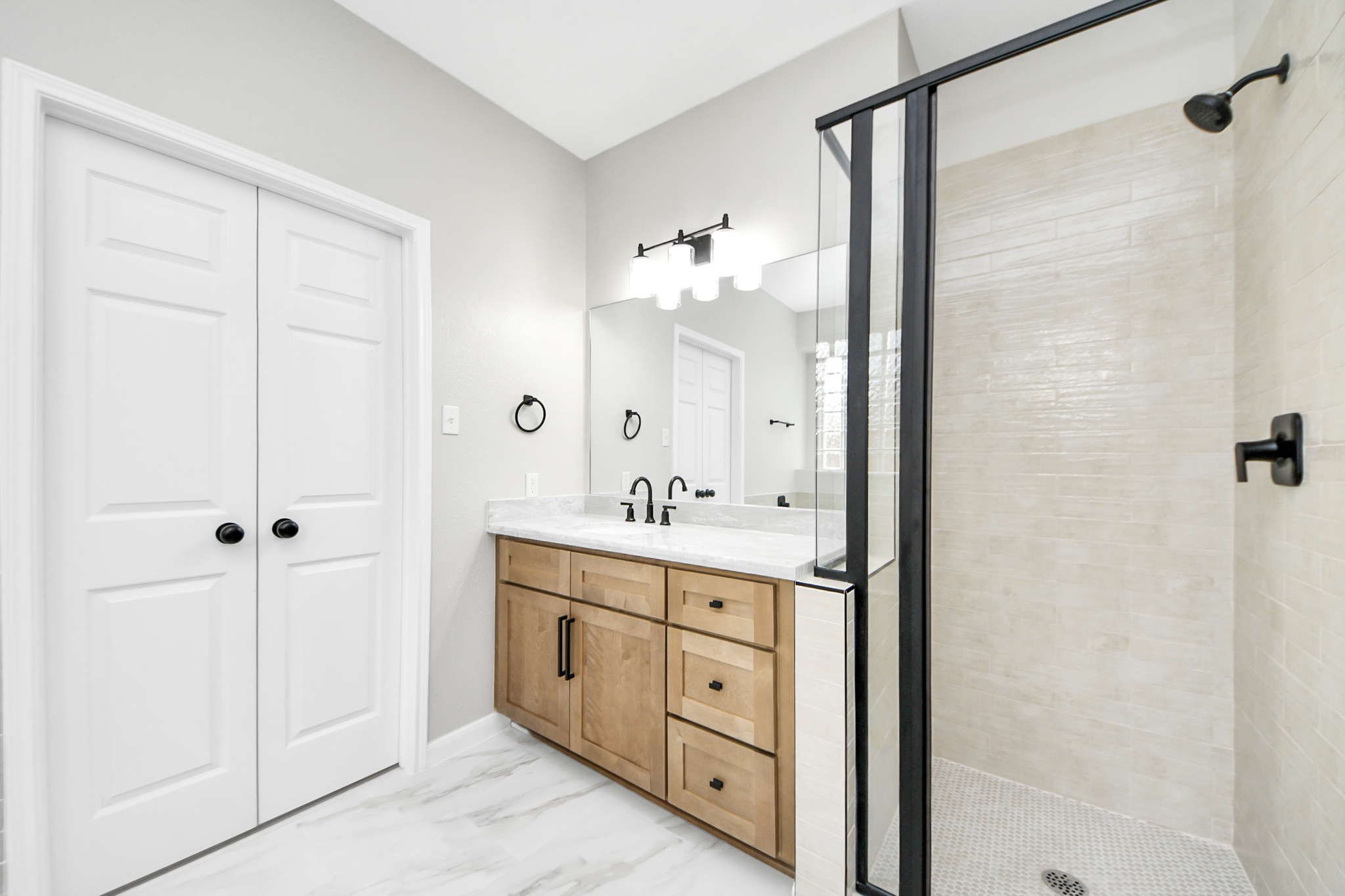 Step into this beautifully remodeled 4-bedrooms home, where comfort, style, and convenience come together. a brand-new kitchen with stylish cabinets, completely renovated bathrooms, all new windows, fresh paint throughout, all-new flooring, and plush new carpet in every bedroom. This stunning home features a classic four-sided brick exterior, an inviting open layout, and a spacious primary suite on the main floor. Upstairs, you’ll find 5 versatile rooms—including bedrooms, a game room, and a dedicated exercise space. Enjoy the peace and privacy of a backyard with no back neighbors, ideal for quiet evenings. The long driveway leads to a detached garage, offering both convenience and curb appeal. Close to popular shopping centers and dining hotspots, this home is nestled in a serene neighborhood with mature trees, scenic walking trails, and friendly neighbors. Miles of hiking trails next to the house, quick access to I-10, and shopping. Zoned to award-winning Katy ISD schools